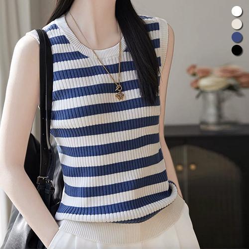 [유니제이] 로테 골지 니트 민소매 티셔츠