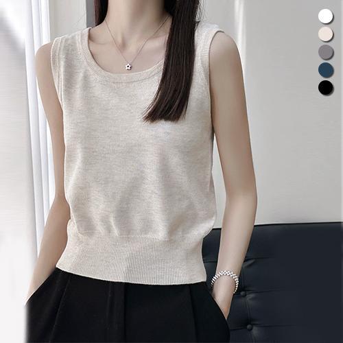 [유니제이] 레리 라운드 니트 민소매 티셔츠