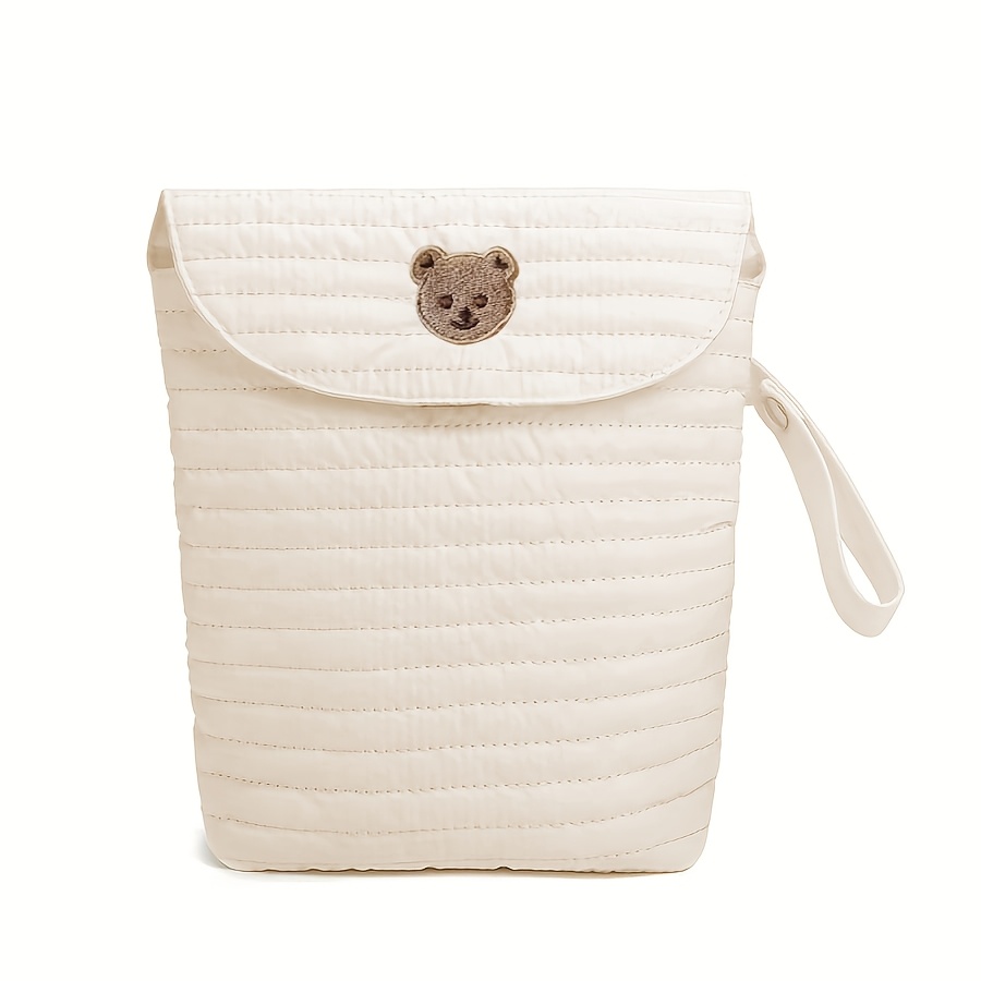TEMU 귀여운 곰 얼굴과 디자인의 베어 기저귀 파우치 - 휴대용/기저귀, 물티슈, 샤워용품 보관 가방, '이동 중 필수품' (화이트/블랙)