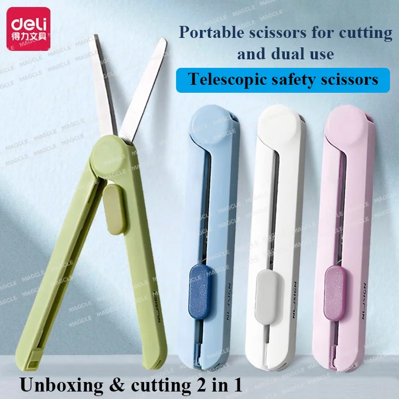 델리 미니 가위 톱니 Unboxing 커터 이중 용도 편지지 스테인레스 스틸 녹 방지 라운드 팁 블레이드 귀여운 휴대용 가제트