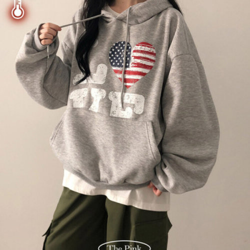 더핑크 / 젤다 오버핏 성조기 기모 프린팅 후드티