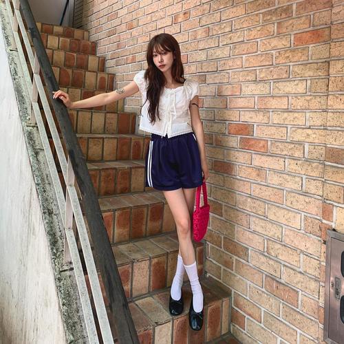 [다잇템]여자 트랙 포인트 허리밴드 져지 라이트 숏팬츠