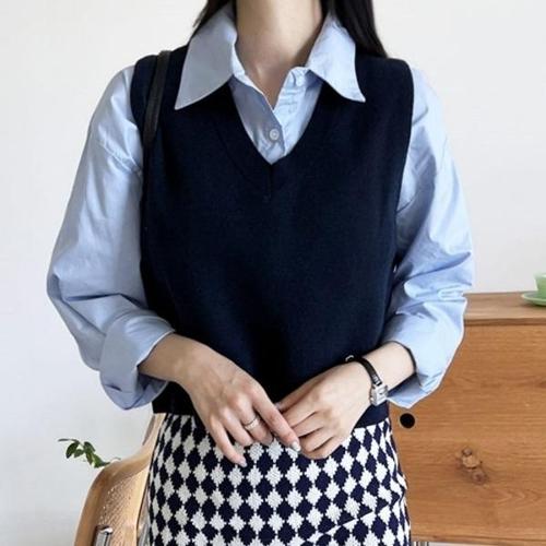 Vezri 여성 가을 겨울 루즈핏 니트 조끼 원피스 레이어드 무지 베스트