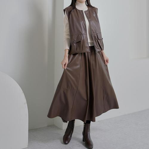 [로즈미] [55~77] 포히 레더 조끼 스커트 투피스 세트