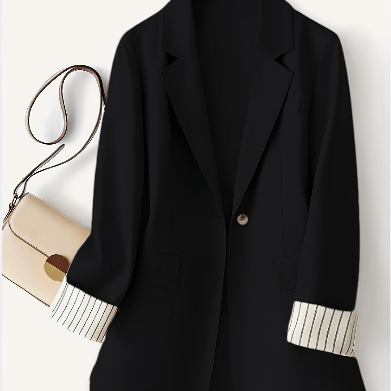 TEMU 우아하고 패셔너블한 여성용 패치워크 재킷, 커프스와 버튼 장식, 사계절용 레귤러 컷