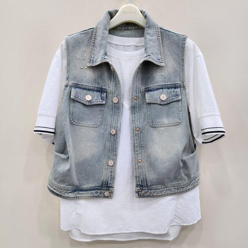 [조이너스]조이너스 셔츠형 면 청 베스트 JAFU4-WDV200_GN