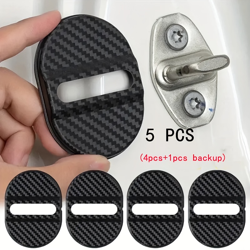 TEMU 5개입 범용 차량 도어 잠금 장치 커버 보호대 | 내구성 좋은 ABS 플라스틱, 녹 방지, 탄소 섬유 패턴, 대부분의 차량에 적합