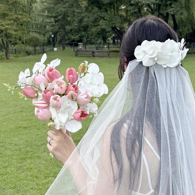 카라 조화 꽃 부케 셀프웨딩 순백의 약속 튤립 35cm 꽃다발 촬영 장식 소품 브라이덜샤워 파티 스냅