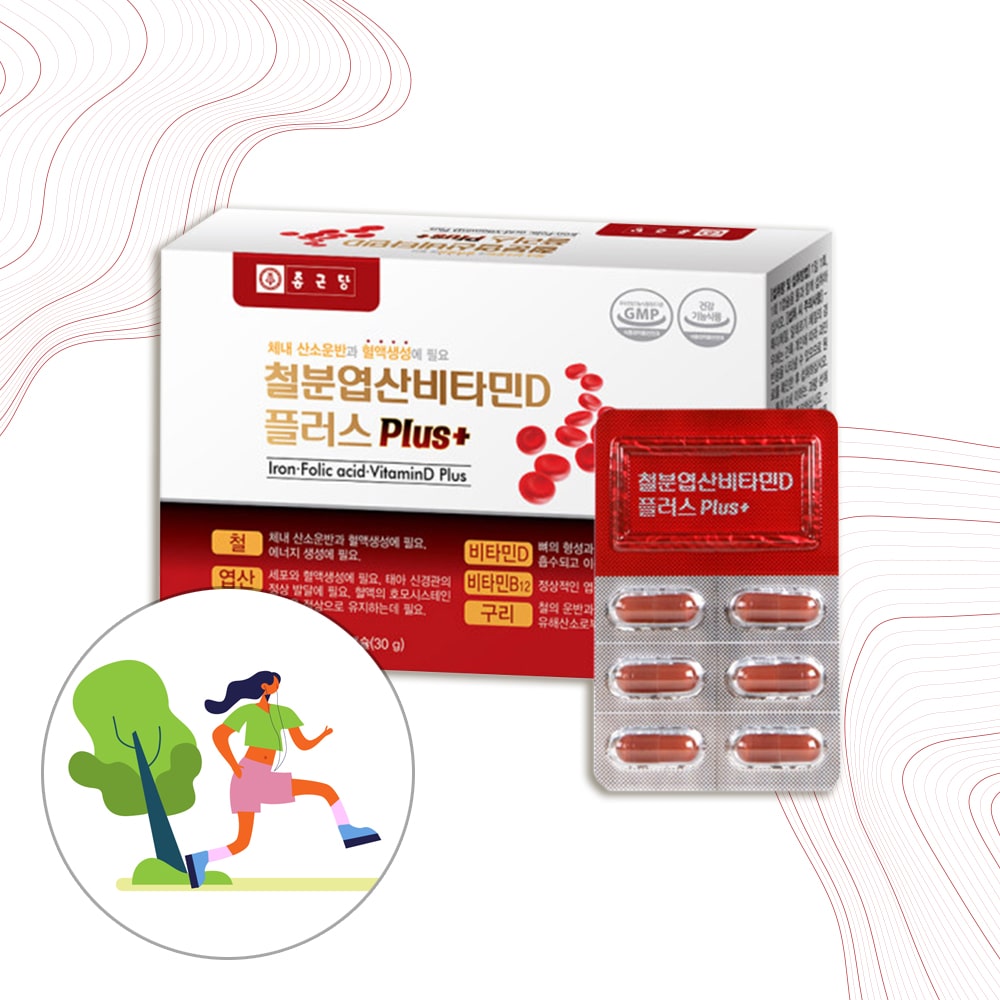 종근당 철분 엽산 비타민D 플러스 500mg x 60캡슐영양제 분보충제 영양제 기능성 D제 보조제