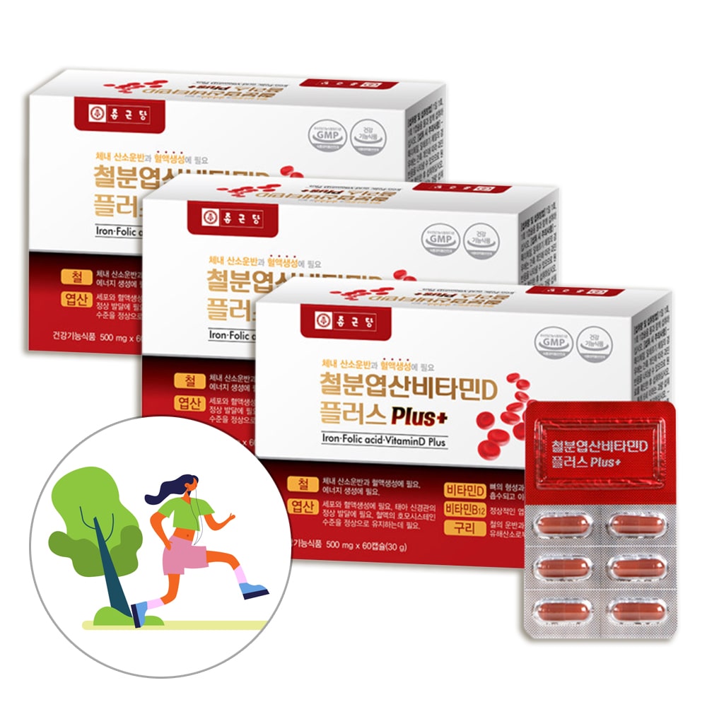 종근당 철분 엽산 비타민D 플러스 (500mgx60캡슐) 3박스