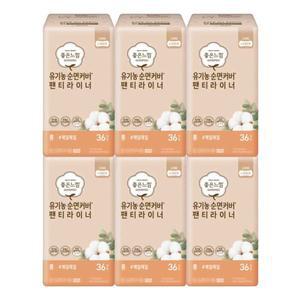 좋은느낌 유기농 순면커버 팬티라이너 롱 36개입 6팩
