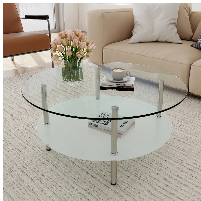 원형 2단 반납 유리 거실 소파 테이블 좌식 커피 테이블2Colors