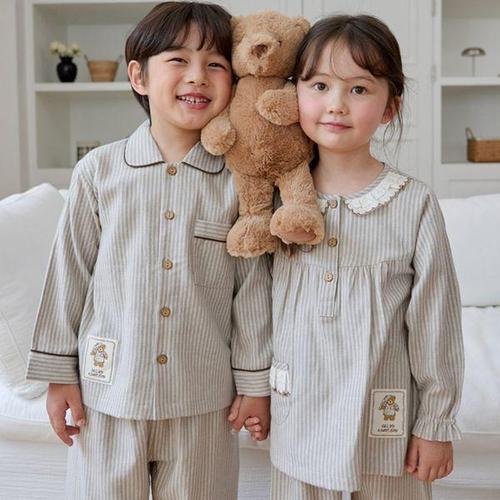 [알콩단잠]국내생산 남아 여아 유아동 주니어 잠옷 순면 곰돌이 파자마 실내복