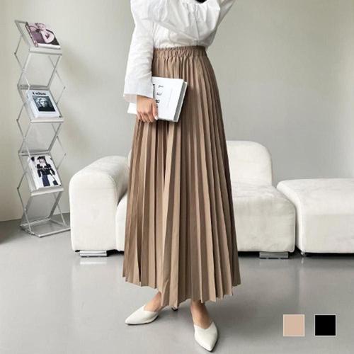 잘빠진 무드 A라인 밴딩 플리츠 롱 스커트