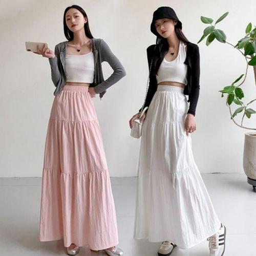 [리빌모아]여자 A라인 허리밴딩 주름 무지 롱 스커트 SDW-SKA-SD1001907