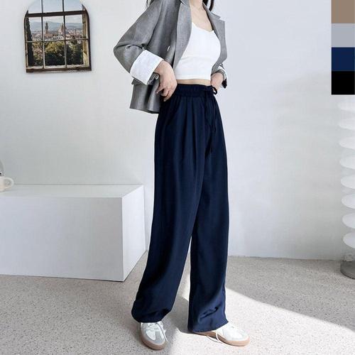 여자 플리츠 쿨린넨 주름 통 와이드 여름바지 WFK8455