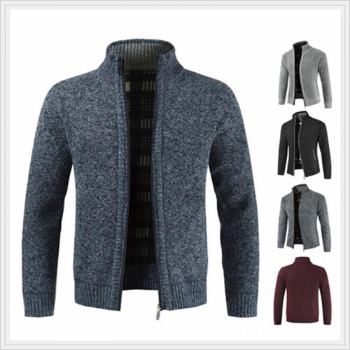 [위즈아이]남성 기모 안감 스탠드 카라 패딩 니트 자켓 겨울 중년 가디건 점퍼 WI182J