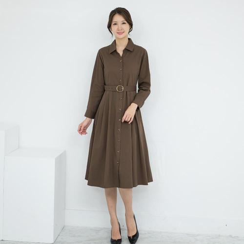 엄마옷 라운드 긴팔 셔츠형 벨트원피스 613BNM628 중년여성/50대/60대/마담/빅사이즈/할머니옷