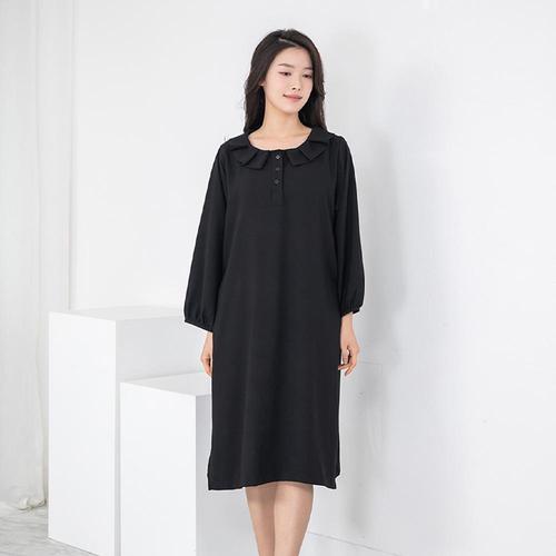 [애비뉴투지]엄마옷 순 면 밑단 셔링 여성 봄 가을 긴팔 캐쥬얼 롱 원피스 O02208 50대 60대 중년여성