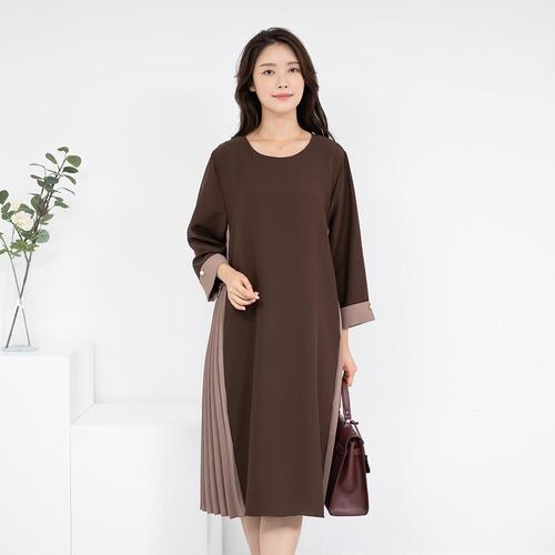 엄마옷 라운드 배색플리츠 원피스 613BNM579 중년여성/50대/60대/마담/빅사이즈/할머니옷