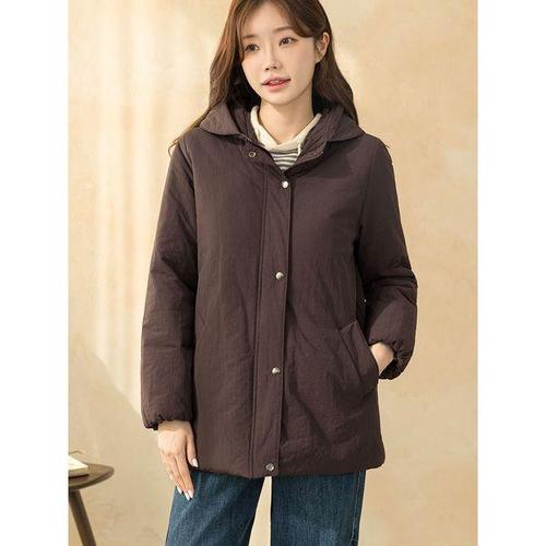 ZAJA 여성 린넨 면 롱 패딩 자켓 가을 겨울 심플 루즈핏 얇은 아우터