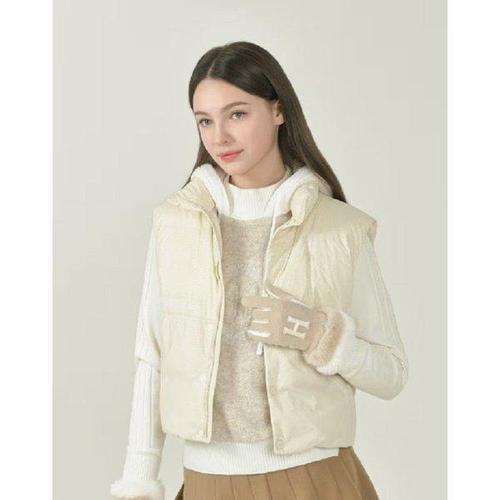 헤지스 여성 24FW 클리어런스구스다운 라이트베이지 카라 숏 중량다운 베스트 HSJU4D905I1