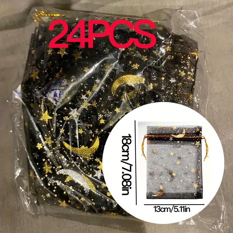 TEMU 트윈 타이가 있는 24팩 블랙 메탈릭 호일 시어 오간자 백 - 4가지 사이즈, 파티 선물용 천문학 테마 패브릭 기프트 파우치, 보석 포장, 웨딩 기프트, 크리스마스, 할로윈, 새해, 데이 및 확인식 파티 장식, 선물용 기프트 백, 축제 기프트 백, 천체 디자인, 반짝이는 마감, 크리스마스에 가장 적합