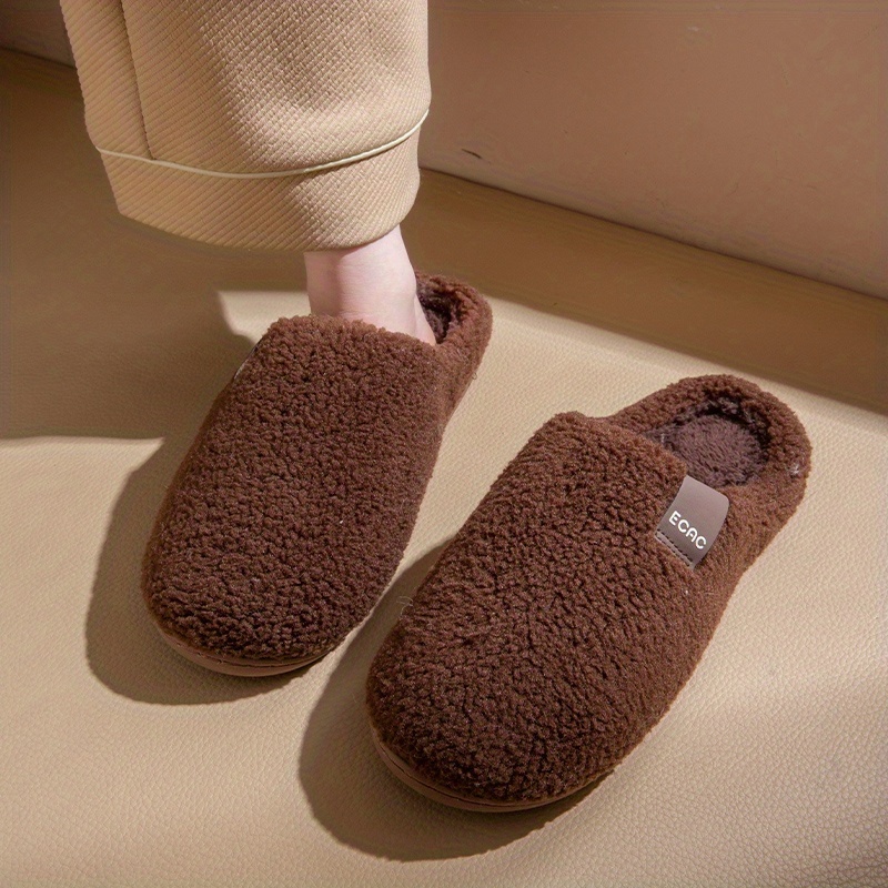 TEMU 남녀공용 심플한 새로운 스타일 안감 포함 두꺼운 플러시 보온 슬리퍼, 가을 겨울용 평평하고 조용한 슬리퍼, 커플용