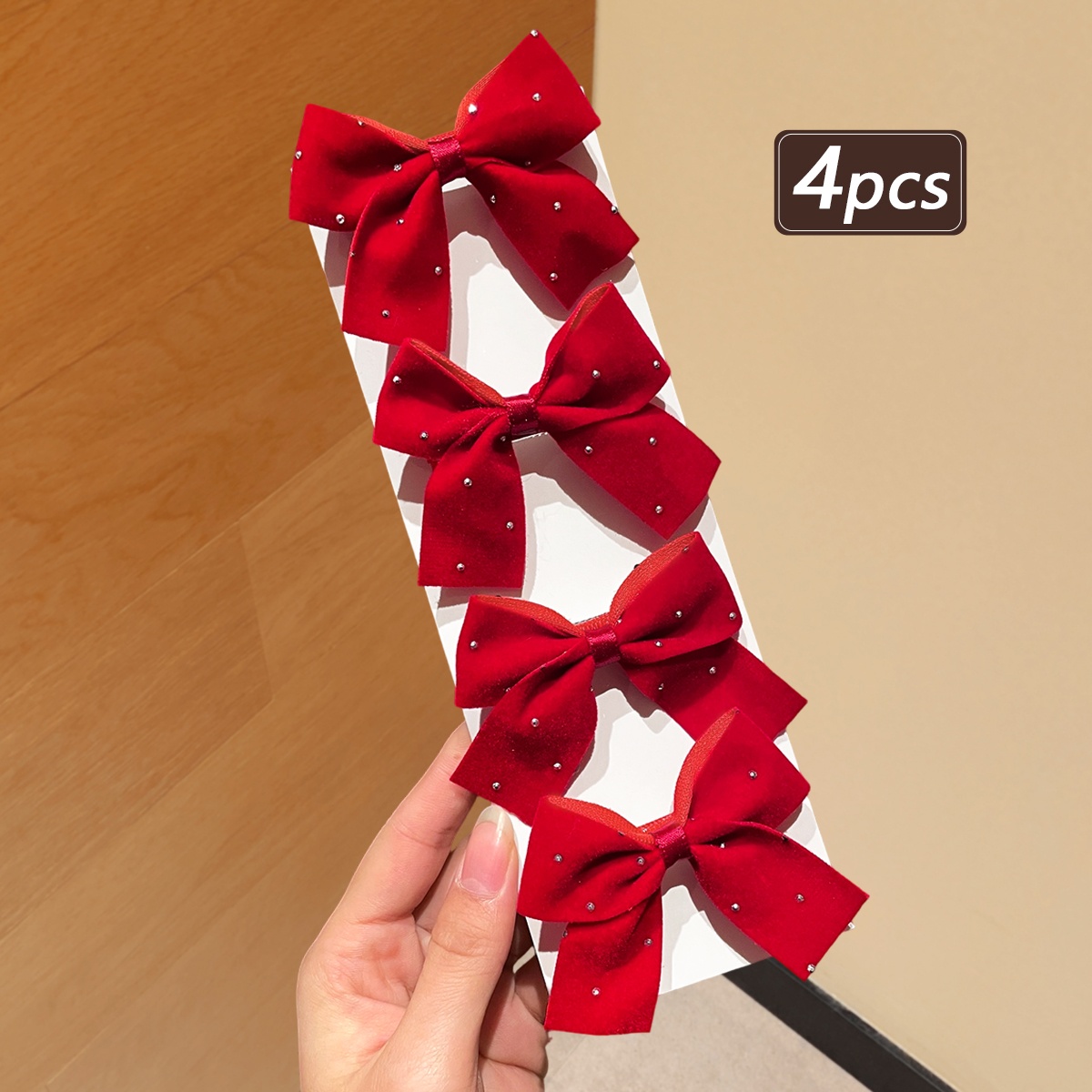 TEMU 4개 레드 벨벳 라인스톤 리본 헤어 클립 | 축제 답례품 및 가을/겨울 데이트에 완벽