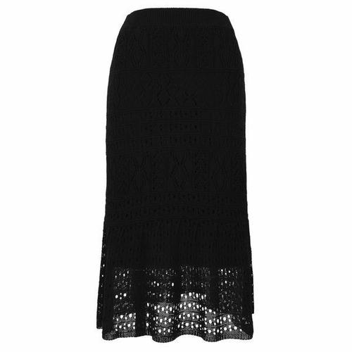 봄과 가을 시즌을 위한 여성용 롱 데님 미디 스커트. 일상복, 출퇴근 등 다양한 경우에 적합합니다.
