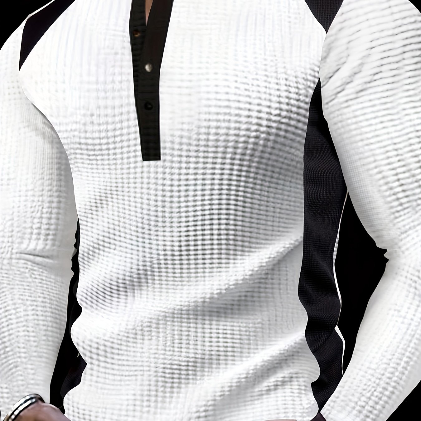 TEMU 남성 캐주얼 와플 니트 헨리 셔츠 - 대비 컬러 버튼업 긴팔 상의, 하프버튼 플라켓, 기계 세탁 가능 가을 겨울 레이어링 필수 아이템, 주말룩, 편안한 핏, 버튼 플라켓 티셔츠, 성인 의류