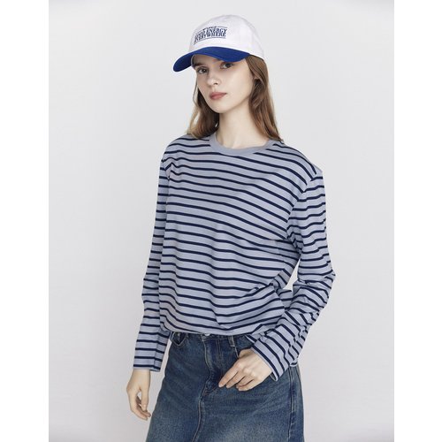 [지오다노]여성 가을 라운드넥 루즈 오버핏 스트라이프 긴팔 면 티셔츠 325909
