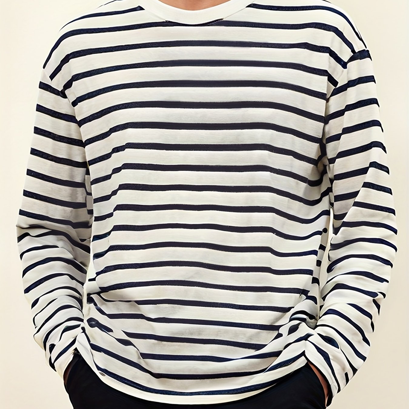 TEMU 남성용 긴팔 셔츠 (봄/가을), 편안하고 캐주얼한 루즈핏 트렌디 라운드넥 티셔츠