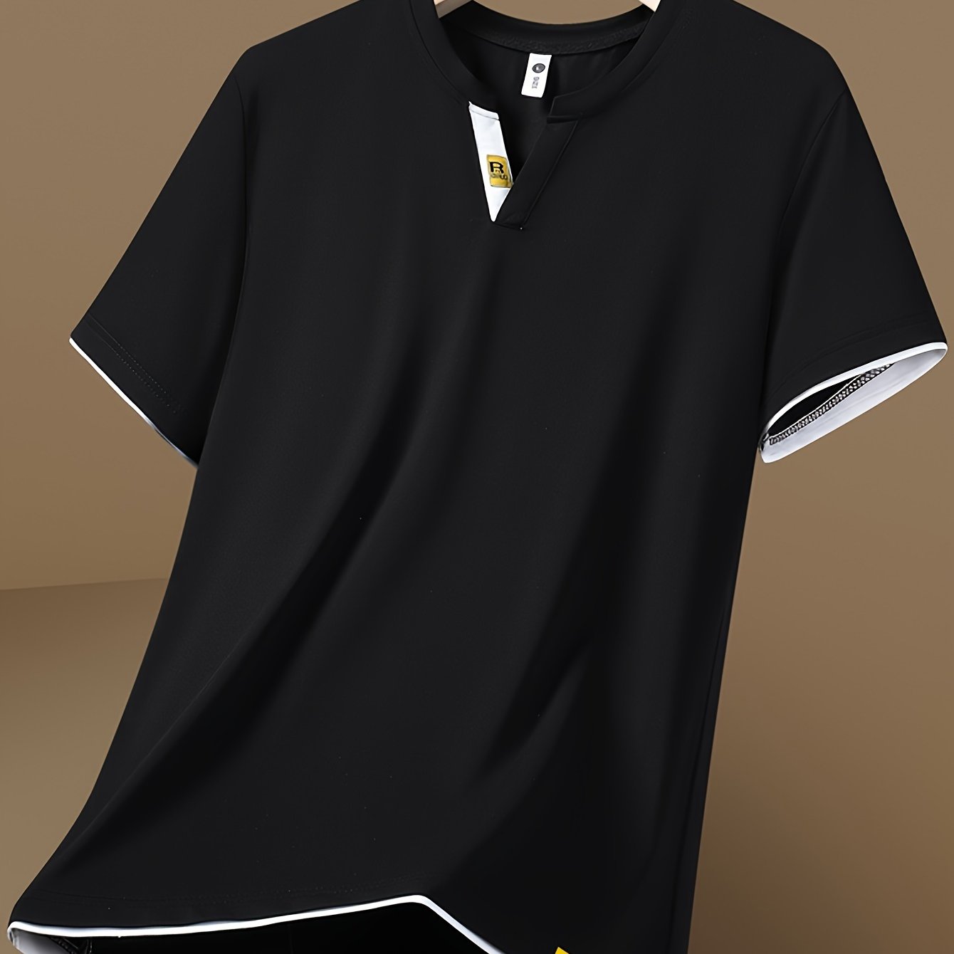TEMU 남성용 솔리드 컬러 V넥 티셔츠, 반소매, 여름 필수 아이템 | 솔리드 컬러, 빠른 건조 폴리에스터, 야외 러닝 및 운동에 완벽, 세탁기 사용 가능