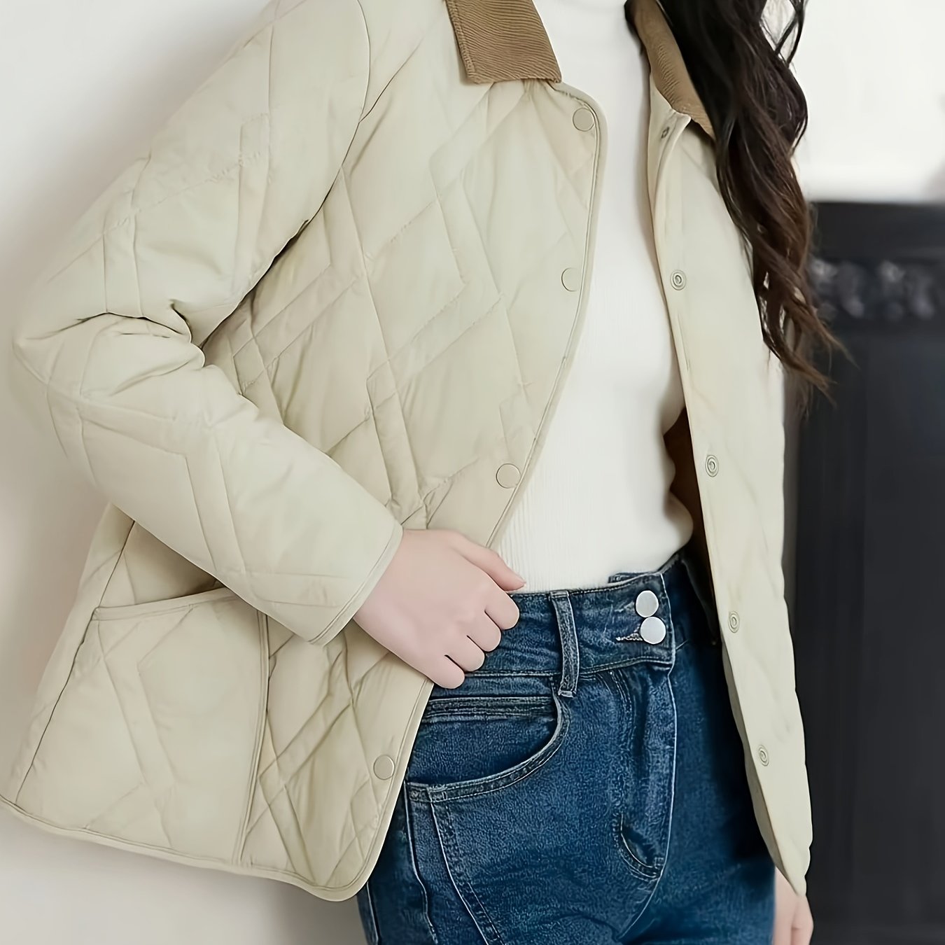 2025년 봄 신상 여성 빈티지 크루넥 퀼팅 코튼 패딩 루즈핏 퀼팅 캐주얼 재킷