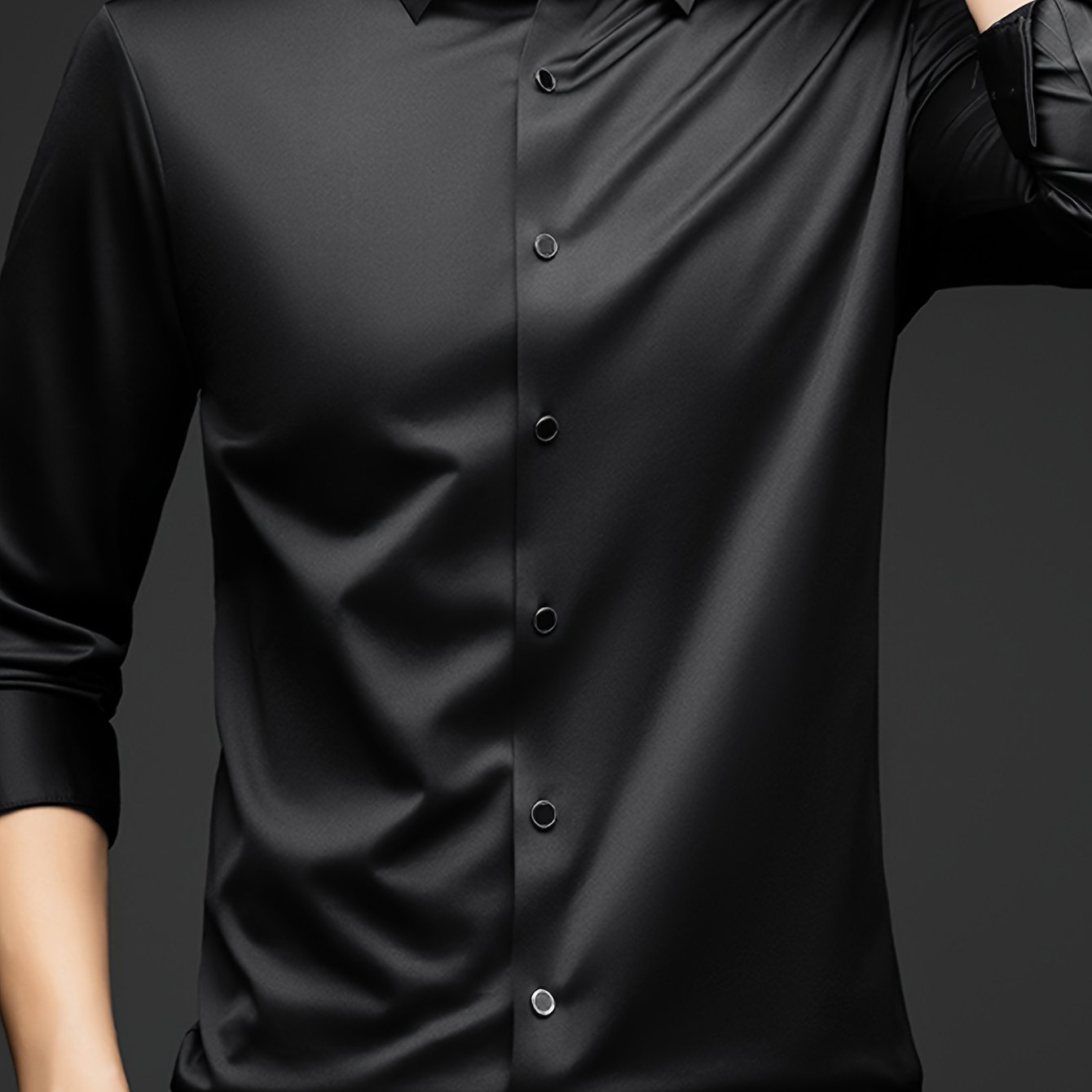 TEMU 남성용 솔리드 긴팔 드레스 셔츠, 폴리에스터 라펠 칼라 캐주얼 비즈니스 탑, 사무실, 파티, 웨딩, 정식 행사용