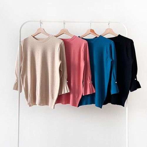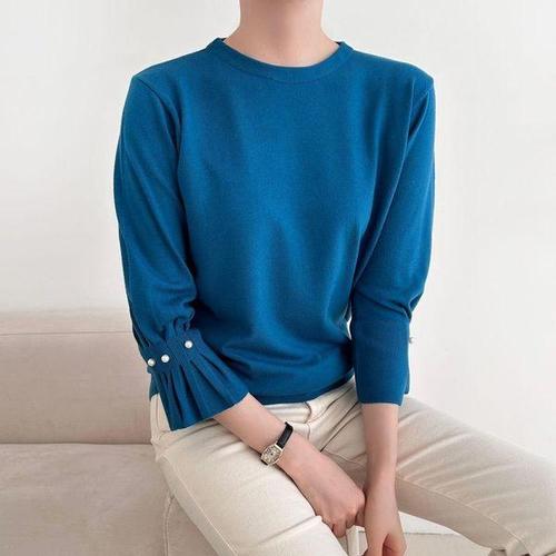 [신상오픈런]여성 비스코스 진주 칠부 니트 가을 티셔츠