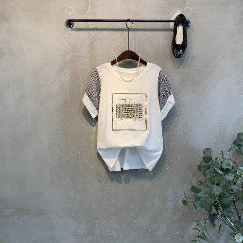 씨샵인더룸 / 리리 체크 소매 금박 진주 반팔 티셔츠 2color