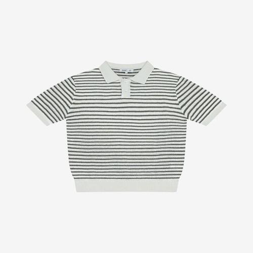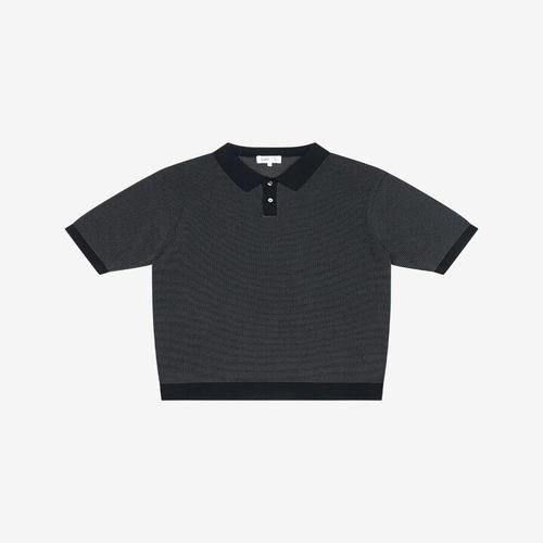 [지이크]지이크 린넨 스트라이프 카라 반팔 니트 블랙프린트 B