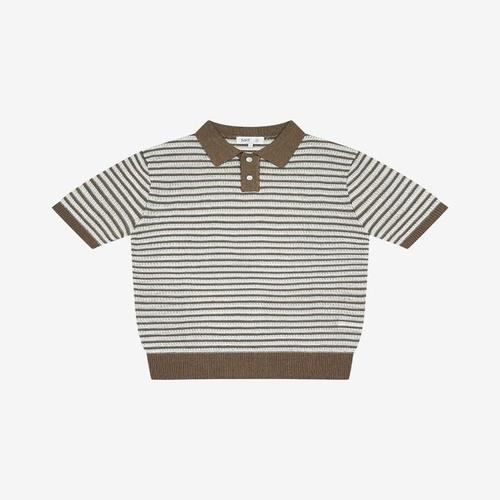 [지이크]지이크 린넨 스트라이프 카라 반팔 니트 카키프린트 B