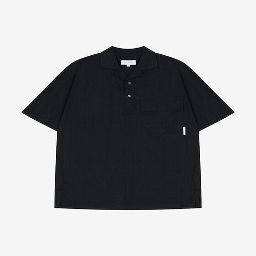 [지이크]블랙 오버핏 니트카라 리벳 포인트 워크 셔츠 (PGBAD5929)