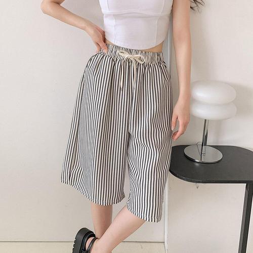 [옷자락] 여자 스트라이프 지지미 여름 버뮤다 5부 밴딩 반바지