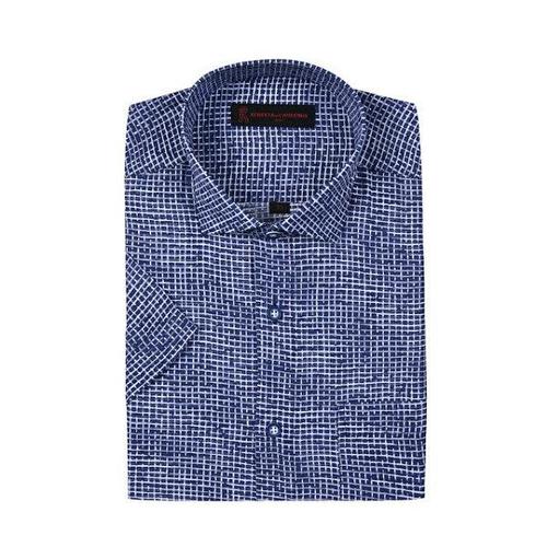 남성 통기성 지지미 블루 패턴 반팔와이셔츠 RFV21766