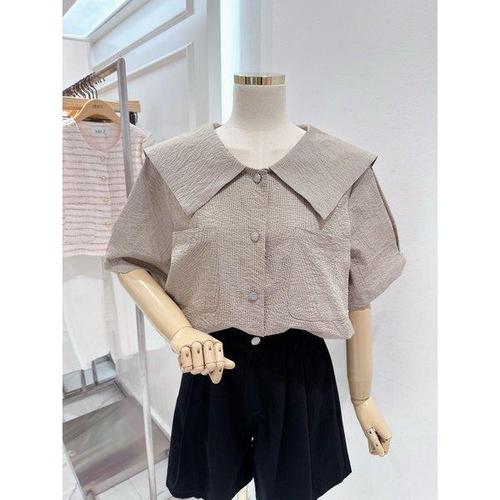 보니제이 / 라운드 반팔 시어서커 블라우스 지지미 루즈핏 여름