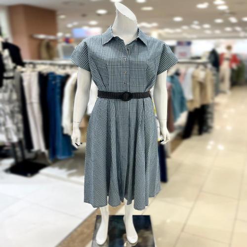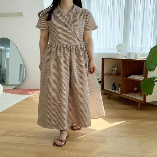 [문에이블]문에이블 여름 시원한 빅사이즈 데일리 지지미 원단 체크 롱원피스