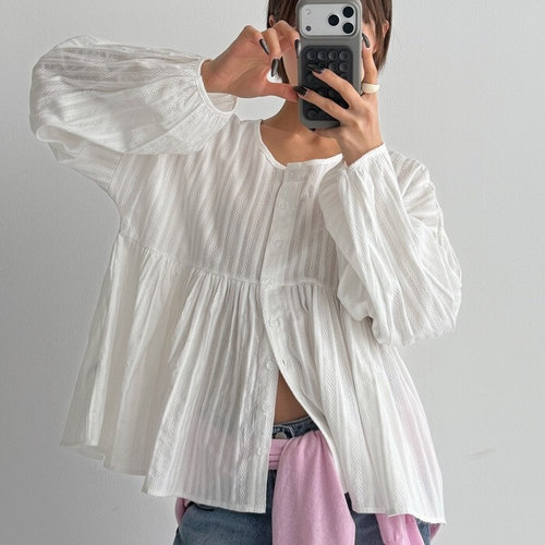 [숲]아일렛 펀칭 빅 카라 블라우스 S5CLS02