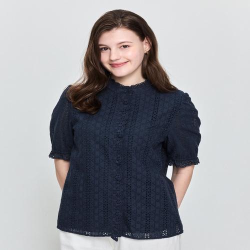[무드무드] 챠유 펀칭 아일렛 반팔 블라우스