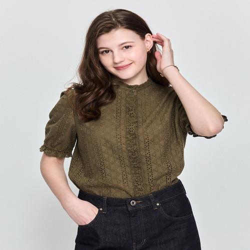 헤지스 여성 아일렛 블라우스 카키 (HSSH5B401K2)