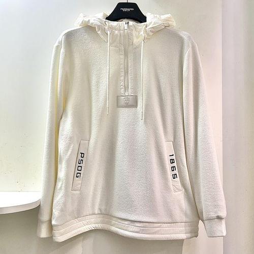 [파사디골프]앞지퍼 가죽 와펜 반집업 후드 티셔츠 아이보리 남성 Q24WTP053X