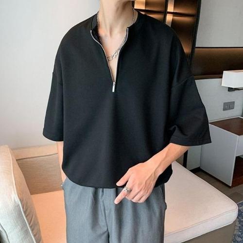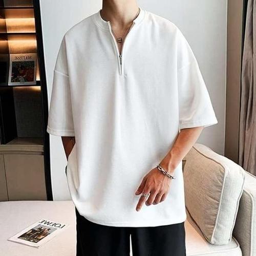 남자 반팔티 오버핏 머슬핏 빅사이즈 남성용 반팔 라펠 지퍼 폴로 셔츠 패션 캐주얼 스트리트 웨어 봄 여름